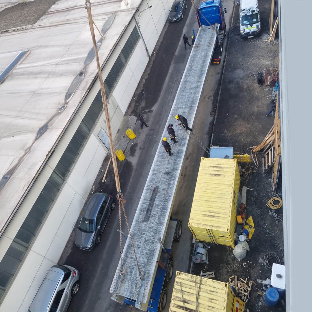 Hier spielte die Verzahnung von Transport- und Hebelogistik eine zentrale Rolle. Nur wenn alle Zahnräder ineinandergreifen, lässt sich eine solche Spezialdecke sicher und wirtschaftlich montieren.