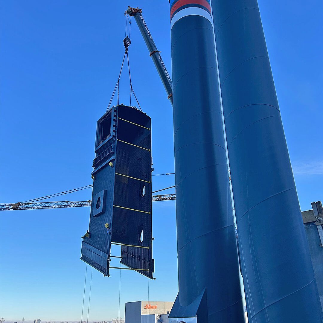 Mit detaillierter Einsatzplanung, einer sorgfältigen Abstimmung der Zufahrtswege und einem eingespielten Team konnten wir die Versetzung des Gaskessels sicher und effizient durchführen. Damit begann die Phase der umfangreichen Versetzarbeiten im Anlageninneren.